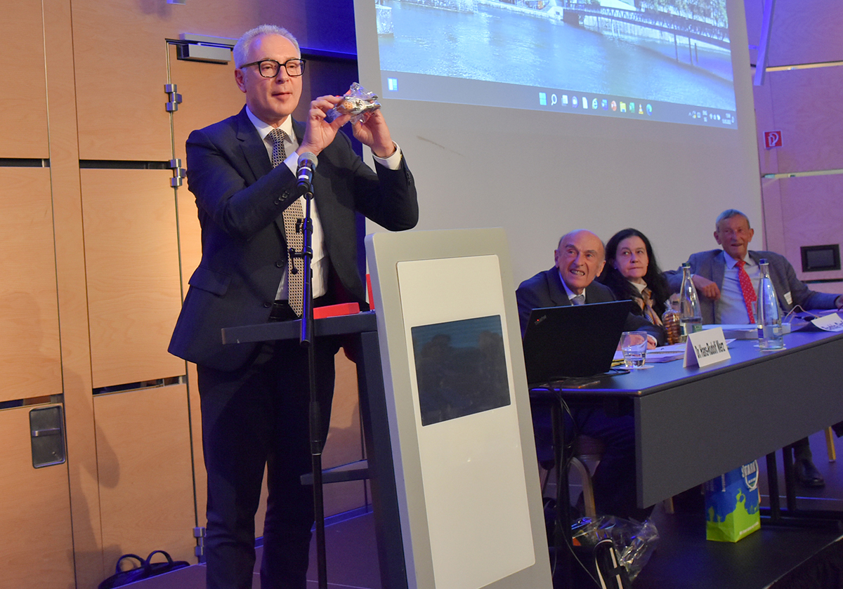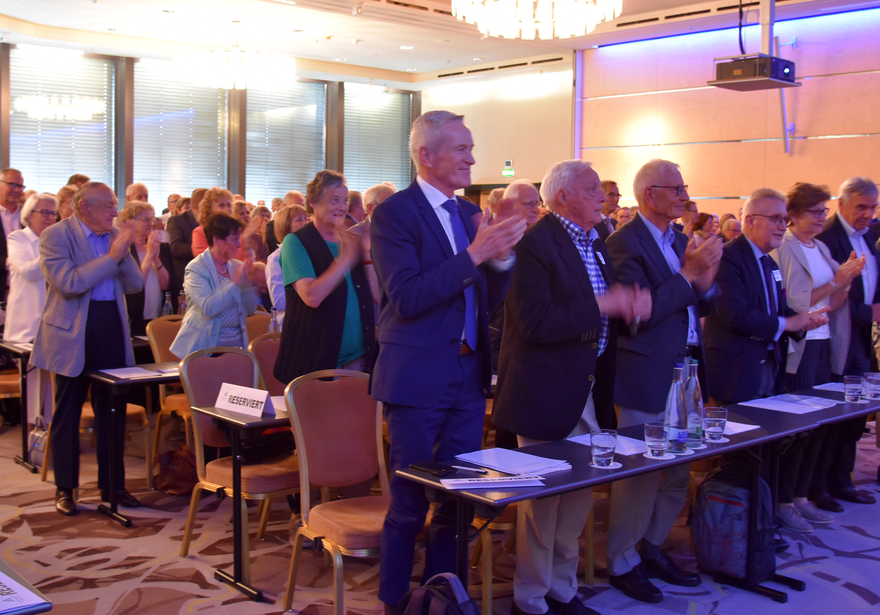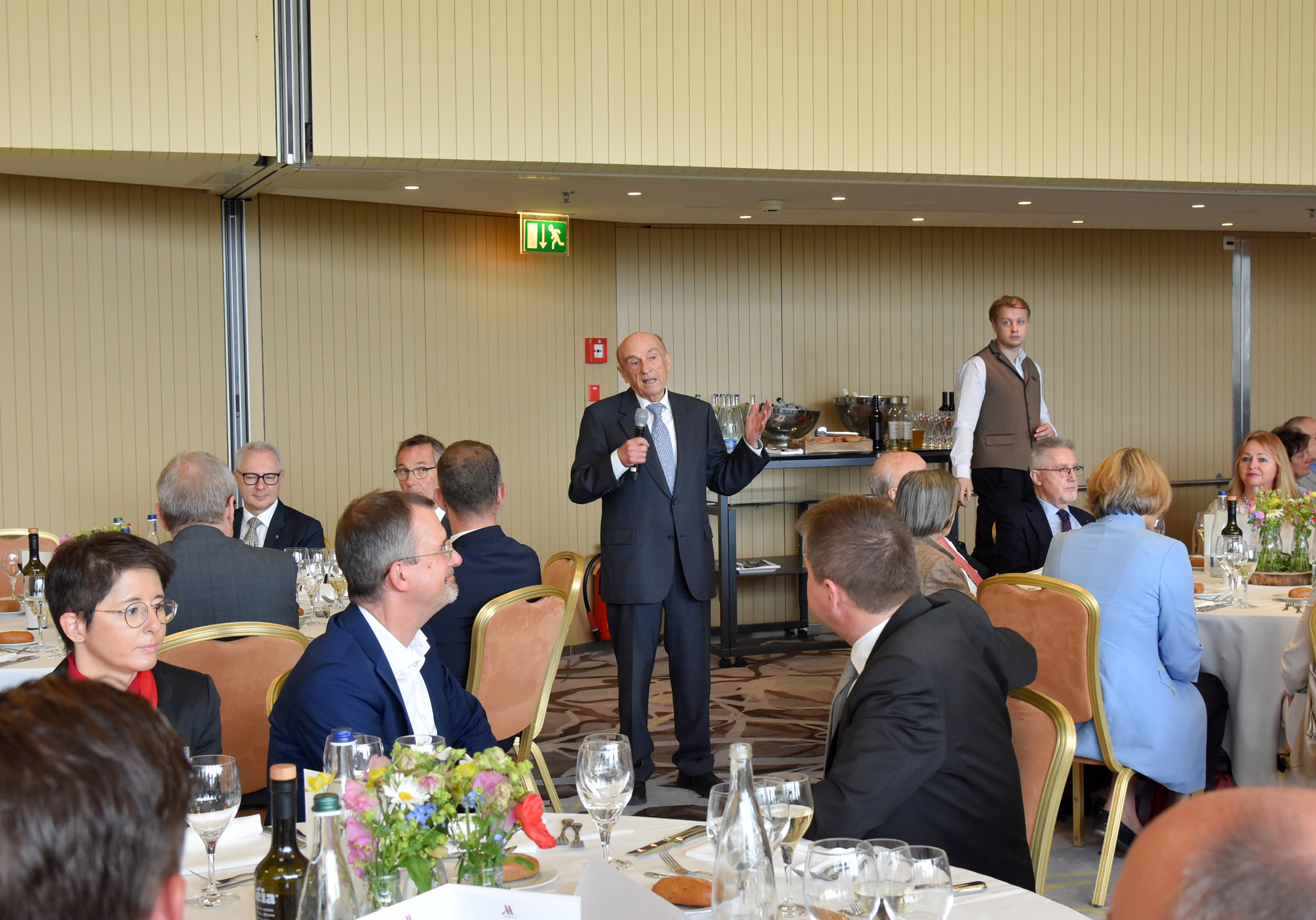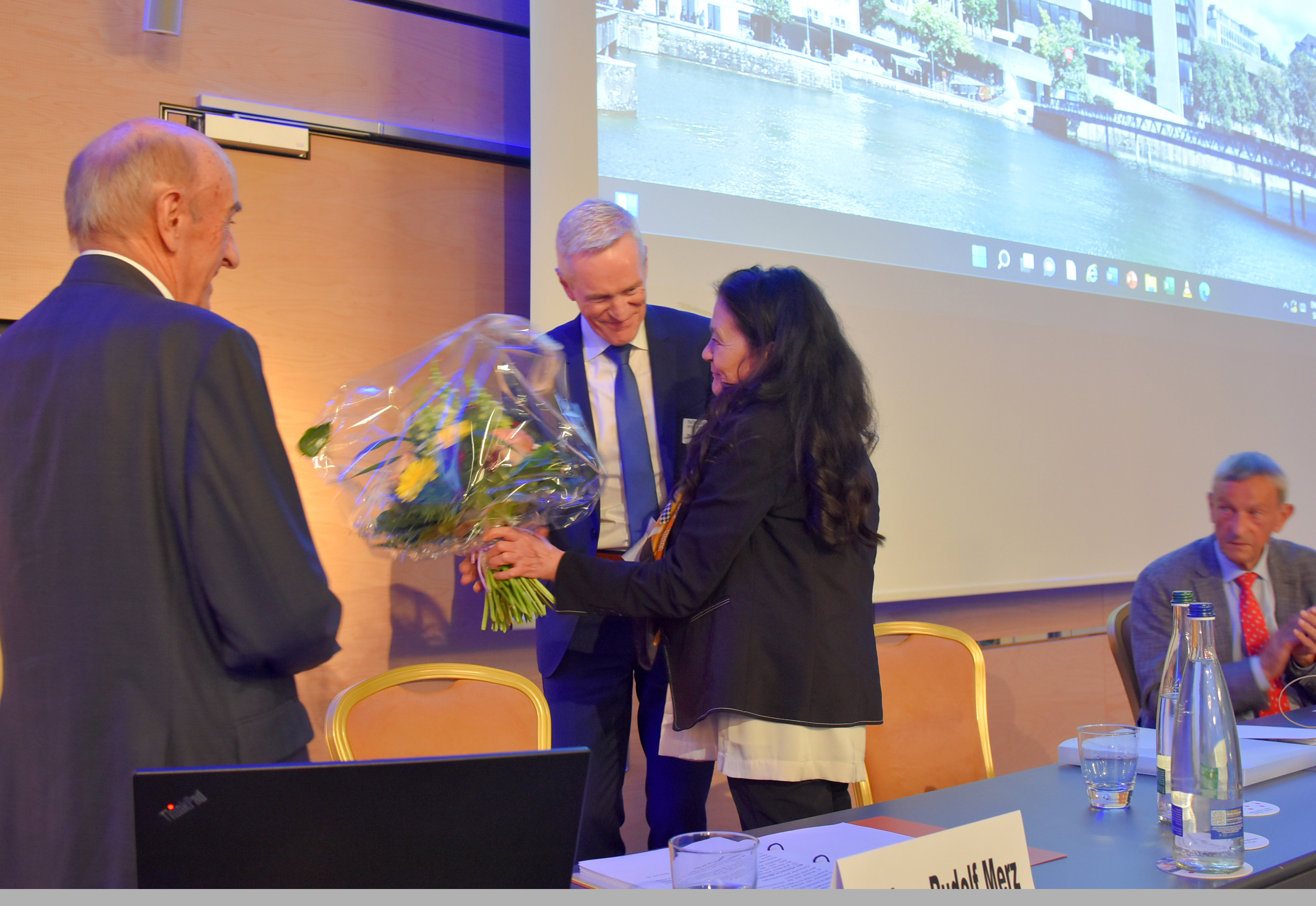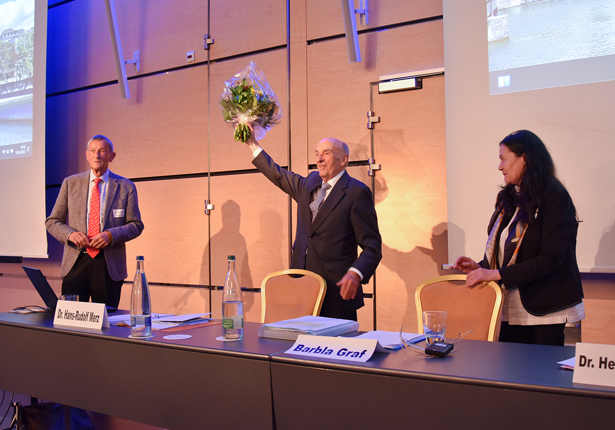 Hans-Rudolf Merz blickte auf seine Arbeit im Vorstand zurück und schloss: «Ich habe das Amt gerne ausgeübt. Es ist bereichernd und bunt wie ein vielfältiges und vielgestaltiges Mosaik, so wie die föderale Schweiz. Was hier an Miliz-, Vereins- und Bürgerarbeit geleistet wird, verdient Carl Spittelers berühmtes Lob: «kommt her beim Styx, stosst an beim Eid, wer da nicht mitmöggt, tut mir leid. Ich danke allen, die mich über die Jahre zuerst in der Finanzkommission, später im Präsidium begleitet haben». Den innigsten Dank richte ich an Barbla Graf: «Unsere Zusammenarbeit war ebenso loyal und respektvoll wie herzlich.»