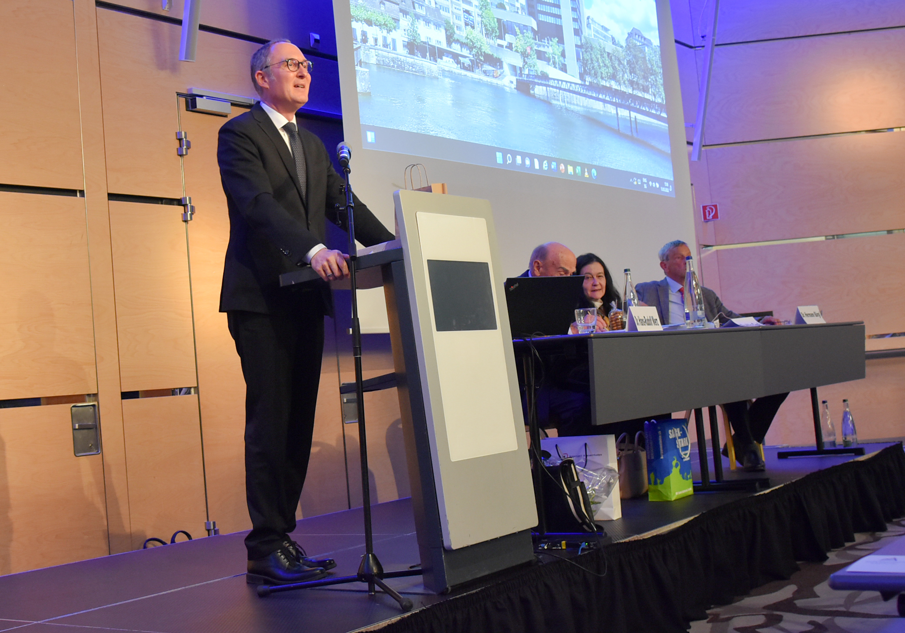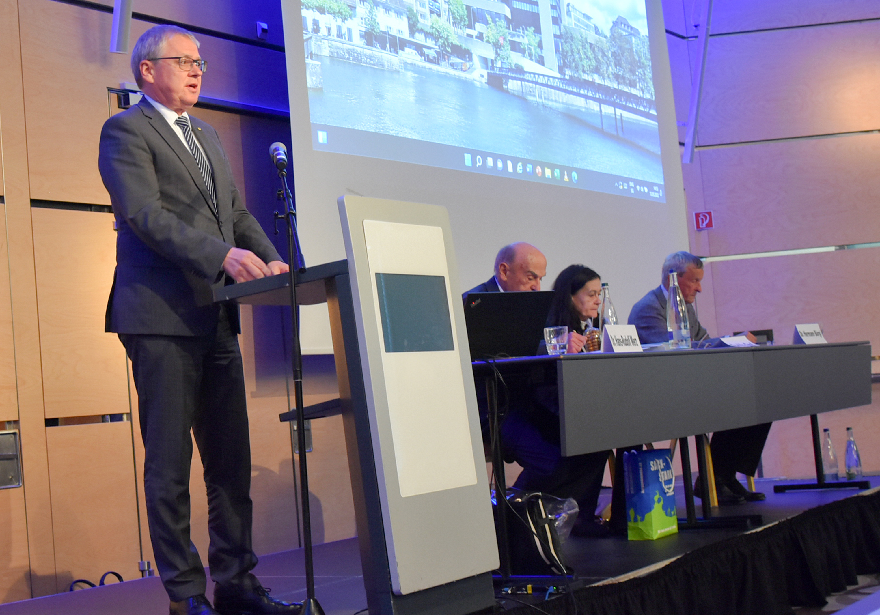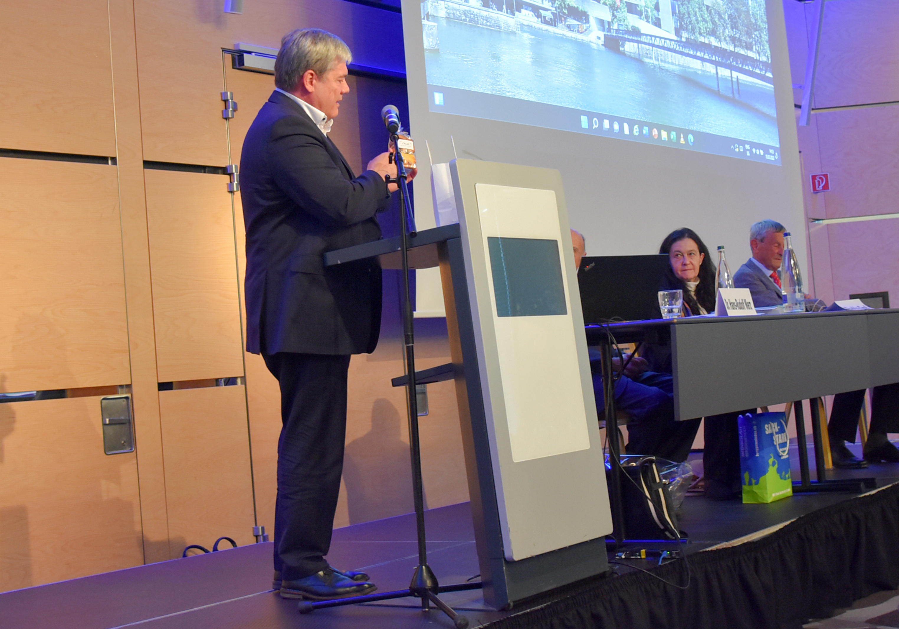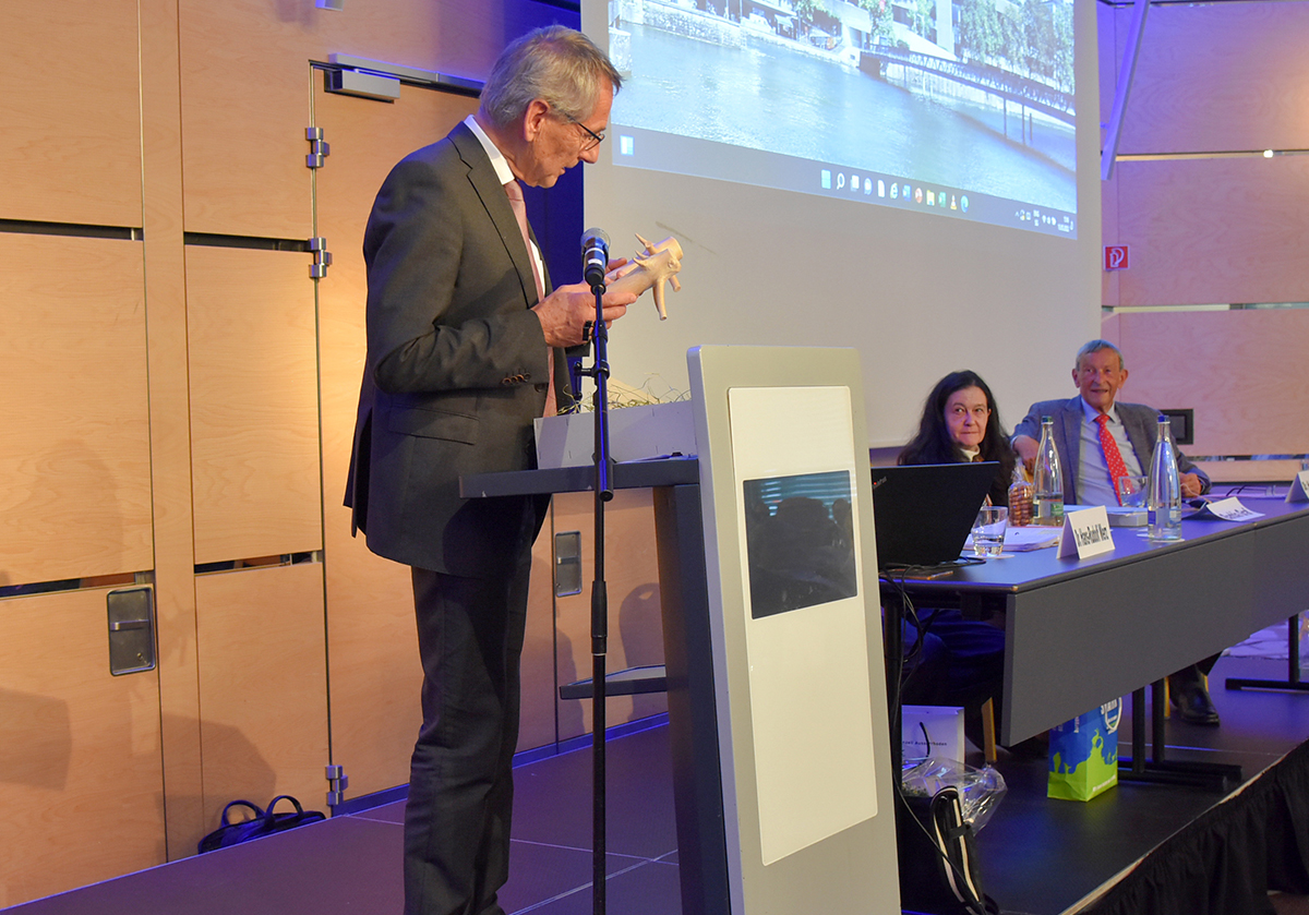 Besonders lang war die Liste der Vertreter von Kantonen, die den Dank – nebst einem Präsent für den abtretenden Präsidenten – aus ihrer Heimat überbrachten: Landammann Daniel Wyler (Obwalden), zeigte ein Beispiel gelebter Solidarität, indem er neben dem Dank seines Kantons gleichzeitig den von Nidwalden und Schwyz ausrichtete. Landamman Urban Camenzind (Uri) bedankte sich für den Einsatz der Schweizer Patenschaft für Berggemeinden, damit das Gefälle zwischen Berg und Tal nicht grösser wird. Frau Regierungsrätin Marianne Lienhard (Glarus) betonte die Wichtigkeit der Unterstützung gerade in schwierigen und unsicheren Zeiten. Landammann Dölf Biasotto (Appenzell Ausserrhoden) erinnerte daran, dass es Mut, freiheitliche Gesinnung und freiwillige Arbeit brauche, um den Spielraum für die wichtigen Tätigkeiten zu schaffen. Landammann Roland Inauen (Appenzell Innerrhoden) berichtete von den guten Momenten: «Die Schweizer Patenschaft bringt uns mehrmals im Jahr Weihnachten.» Regierungsrat Christian Rathgeb (Graubünden) lobte den Nutzen, den das Netzwerk und der institutionelle Austausch zwischen Berggebiet und urbanen Kreisen bringt. Und er ergänzte: «Private unterstützen die öffentliche Hand – das ist einmalig!» Staatsrat Norman Gobbi (Tessin) bekräftigte, dass die Gönnerinnen und Gönner einen wichtigen Beitrag zum Zusammenhalt unseres Landes leisten. Peter Mäder (Freiburg) dankte dafür, dass viele Projekte dank der Unterstützung realisiert werden konnten. Christophe Riat (Jura) drückte den Dank so aus: «Wir haben das grosse Glück, dass wir von der Unterstützung der Schweizer Patenschaft für Berggemeinden profitieren können.» Und schliesslich dankte Robert Vogel, Vizepräsident von Entlebuch, im Namen aller Gemeinden im Kanton Luzern für die Arbeit des Vorstandes, der Geschäftsstelle und die Unterstützung der Gönnerinnen und Gönner. Die Versammlung folgte ihm mit Applaus.