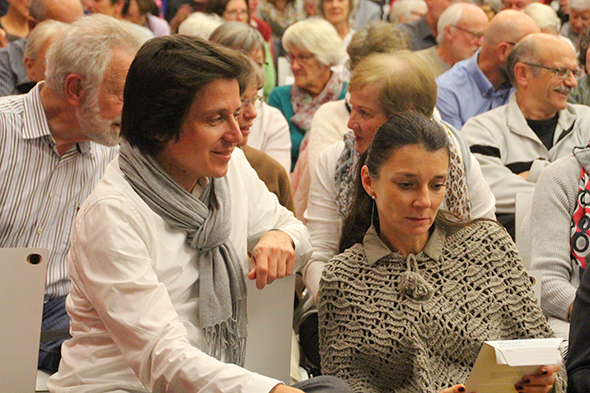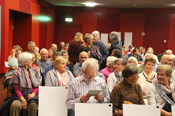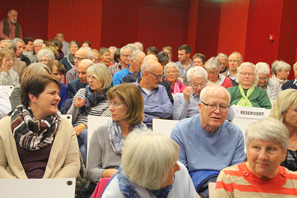 Auf der grossen Leinwand glitten grandiose Landschaften vorbei. Nicht nur spektakulär aufragende Berge, sondern auch sanfte Hügellandschaften zeigten ihre Faszination – eingefangen im richtigen Moment vom Fotografen, der oft jahrelang darauf wartete, bis er eine Stimmung so einfangen konnte, wie er sich das vorgestellt hatte. So fügten sich Erde und Himmel, Landschaft und Wolken, Farben und Formen zu einem wahren Gesamtwerk mit Musik, das die Landschaft Schweiz von ihrer besten Seite zeigte. Aber – das betonte Paul Roos – die Landschaft muss bewohnt und bewirtschaftet sein, damit sie bestehen kann und nicht verwildert. Damit verwies er auch auf die Arbeit der Schweizer Patenschaft für Berggemeinden und schloss: «Wir leben im Paradies – aber wir müssen ihm Sorge tragen.»