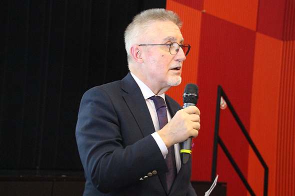 Zuvor lag es aber an Lukas Briner, Präsident unserer PR-Kommission, den Fotografen Paul Roos zu würdigen und zu verdanken. Paul Roos habe in seinem Leben nicht nur ein bedeutendes Architekturbüro gegründet und geleitet, sondern auf seinen vielen Ausflügen und Reisen einen speziellen Blick nicht nur auf Bauten, sondern auch auf die Dynamik von Landschaften entwickelt. Paul Roos selber schilderte seinen Wandel vom ambitionierten Bergsteiger zum Fotografen: Nachdem ihn in jungen Jahren vor allem die sportliche Leistung gereizt hatte, wandte er sich dann der Suche nach der «Seele der Landschaft» zu. Das Resultat sind seine gekonnt arrangierten Lichtbildersinfonien. Er fotografierte zeitlebens mit der analogen Hasselblad-Kamera.