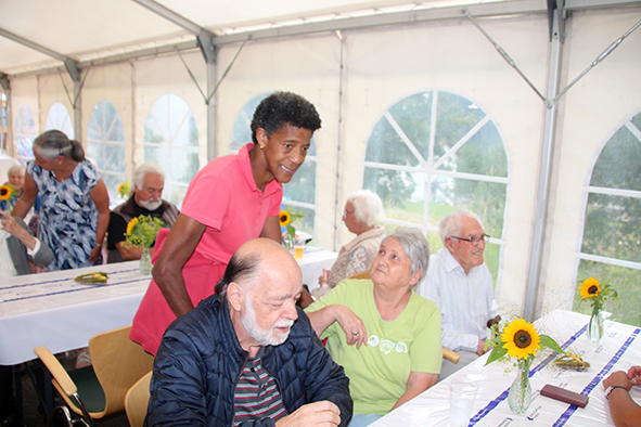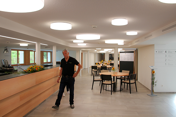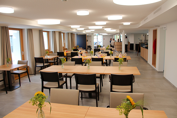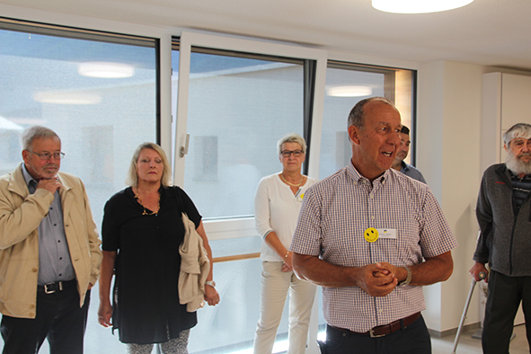 «Leben ins Haus brin­gen und die Bewohner in den Mittelpunkt stel­len», so erklär­te der Geschäftsleiter Roland Weber die Philosophie des Umbaus des Alters- und Pflegeheims. Während der Besichtigung demon­strier­te er auf ein­drück­li­che Weise, wie die­se umge­setzt wur­de. Die 65 Zimmer sind ange­nehm gestal­tet, die Gemeinschaftsräume strah­len eine freund­li­che Atmosphäre aus, die Arbeitsabläufe für das Personal sind opti­mal orga­ni­siert. Das Projekt koste­te rund 9.5 Mio. Franken, wir konn­ten 300’000 Franken Spendengelder dazu beisteuern.
