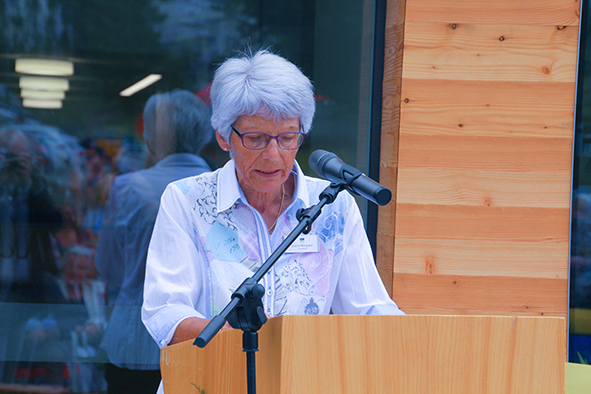 «Fortschrittliche Ideen und Konzepte las­sen sich auch hin­ter dem Berg ver­wirk­li­chen.» Mit die­ser Botschaft blick­te Ursina Mengiardi, Präsidentin des Consorzi Chasa Puntota – das Alters- und Pflegeheim ist als Genossenschaft orga­ni­siert – auf die zahl­rei­chen und auf­wen­di­gen Arbeiten für den Umbau zurück. Mit Genugtuung wies sie auf wich­ti­ge  Errungenschaften hin, so sind zum Beispiel alle Zimmer und Nasszellen roll­stuhl­gän­gig, und im gan­zen Haus gibt es WLAN: «Hier sind alle mit der gan­zen Welt ver­bun­den.» Ursina Mengiardi bedank­te sich bei allen Beteiligten für den Mut und das Vertrauen. Sie erwähn­te auch, wie viel Zeit und Herzblut die Vorstandsmitglieder und vie­le ande­re Freiwillige für das Projekt auf­brach­ten – es war allen wich­tig, die Bewohnerinnen und Bewohner und ihre Angehörigen von Anfang an ins Projekt ein­zu­be­zie­hen. Das gelang bis zum Schluss – die Männergruppe ver­brach­te zahl­rei­che Stunden mit der Bearbeitung der Holzabdeckung für die bei­den Brunnen.