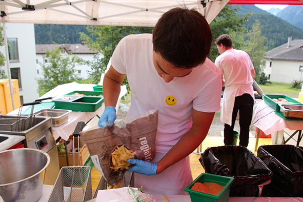 Der Einladung zum Tag der offe­nen Tür folg­te eine beein­drucken­de Menschenschar aus dem gan­zen Tal. Für die Organisatoren war dies ein schö­ner Dank und ein Zeichen dafür, dass ihre Arbeit gros­sen Respekt geniesst. Die gute Lage am Rand des Dorfes und die Cafeteria mit ihrem ein­la­den­den Aussenraum wer­den sicher in den näch­sten Jahren dafür sor­gen, dass sich in der Chasa Puntota jun­ge und alte Menschen begeg­nen und aus­tau­schen werden.