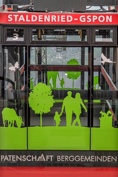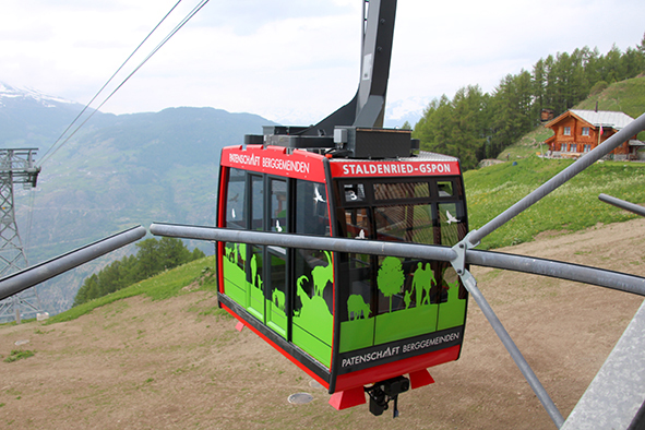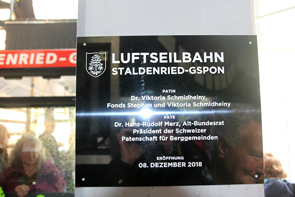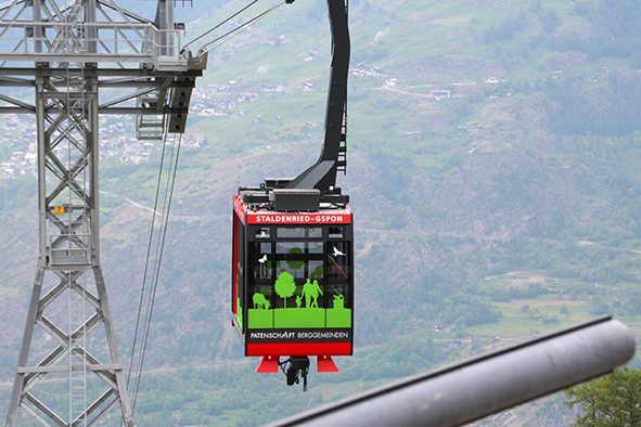 Am Pfingstsonntag, 9. Juni 2019, fand in Staldenried im Vispertal das Bähnlifäscht vor grosser Walliser Kulisse statt. Die Freude ist gross, können die 34 bewohnten Weiler und der am höchsten gelegene Weiler Gspon seit Dezember 2018 wieder per Luftseilbahn erreicht werden. Zum Festakt gehörte auch die Taufe einer Kabine im Patenschafts-Kleid.
