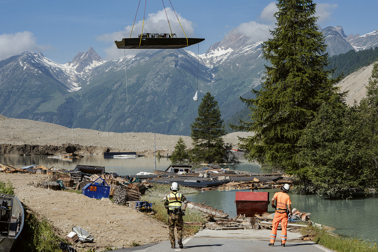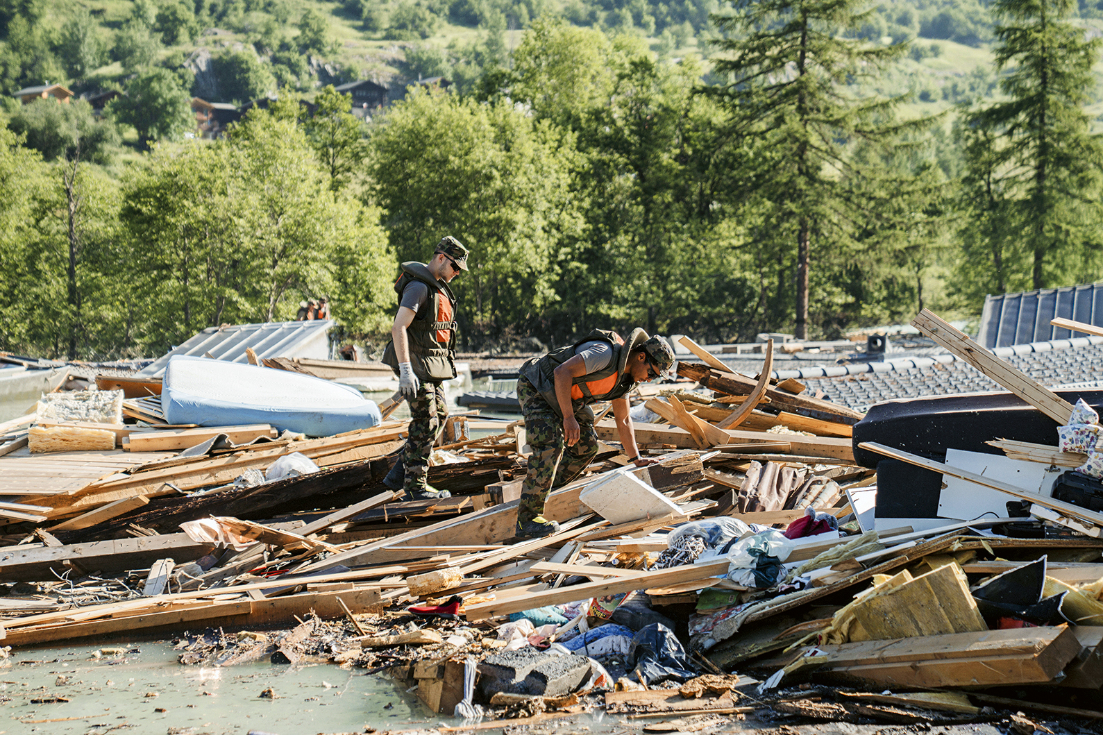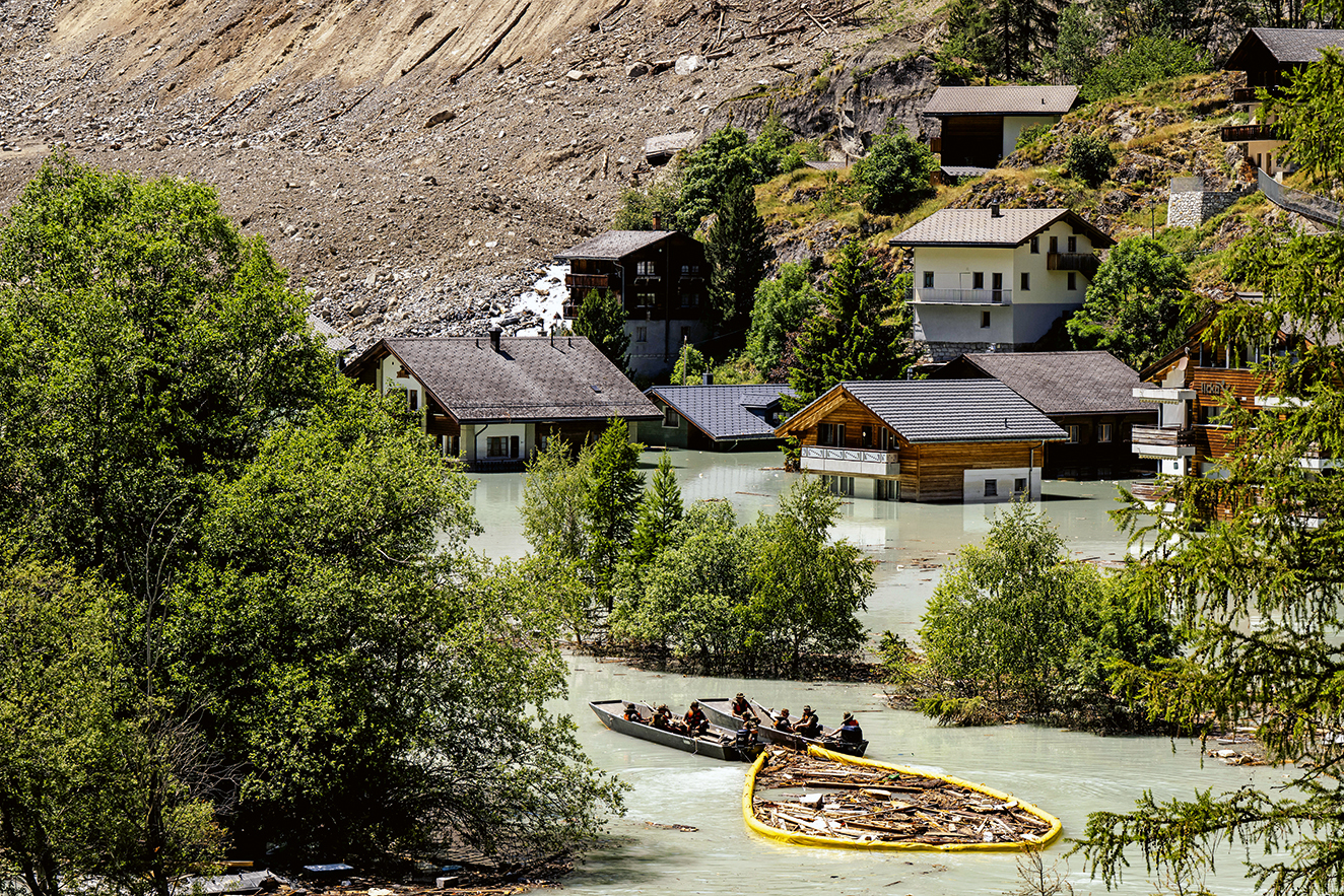 10 Tage spä­ter haben wir die trau­ri­ge Gewissheit: Der Birchgletscher ist abge­stürzt und hat gross­flä­chi­ge Murgänge oder Erdrutsche aus­ge­löst, das Dorf unter sich begra­ben und Häuser und Infrastrukturen zerstört.