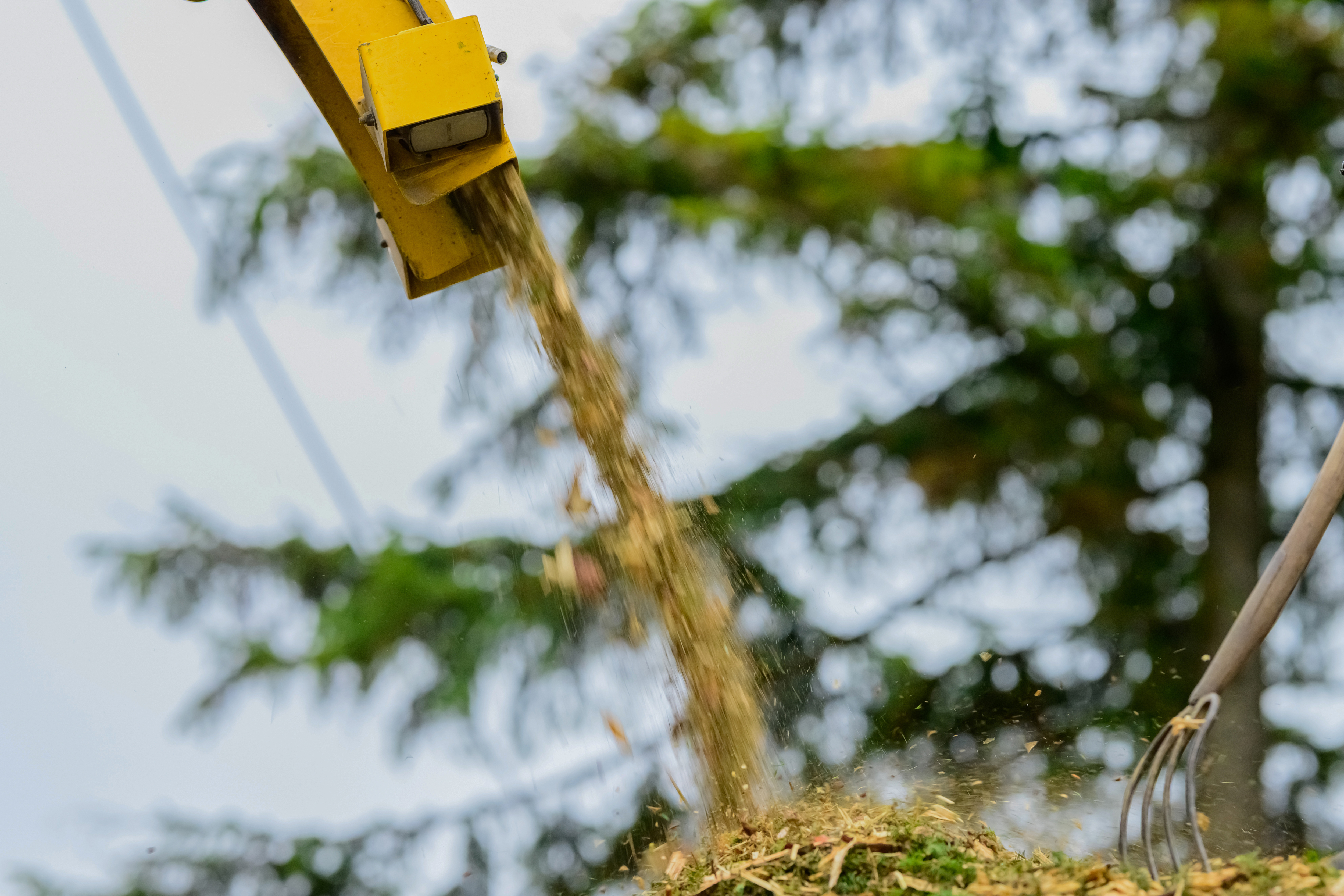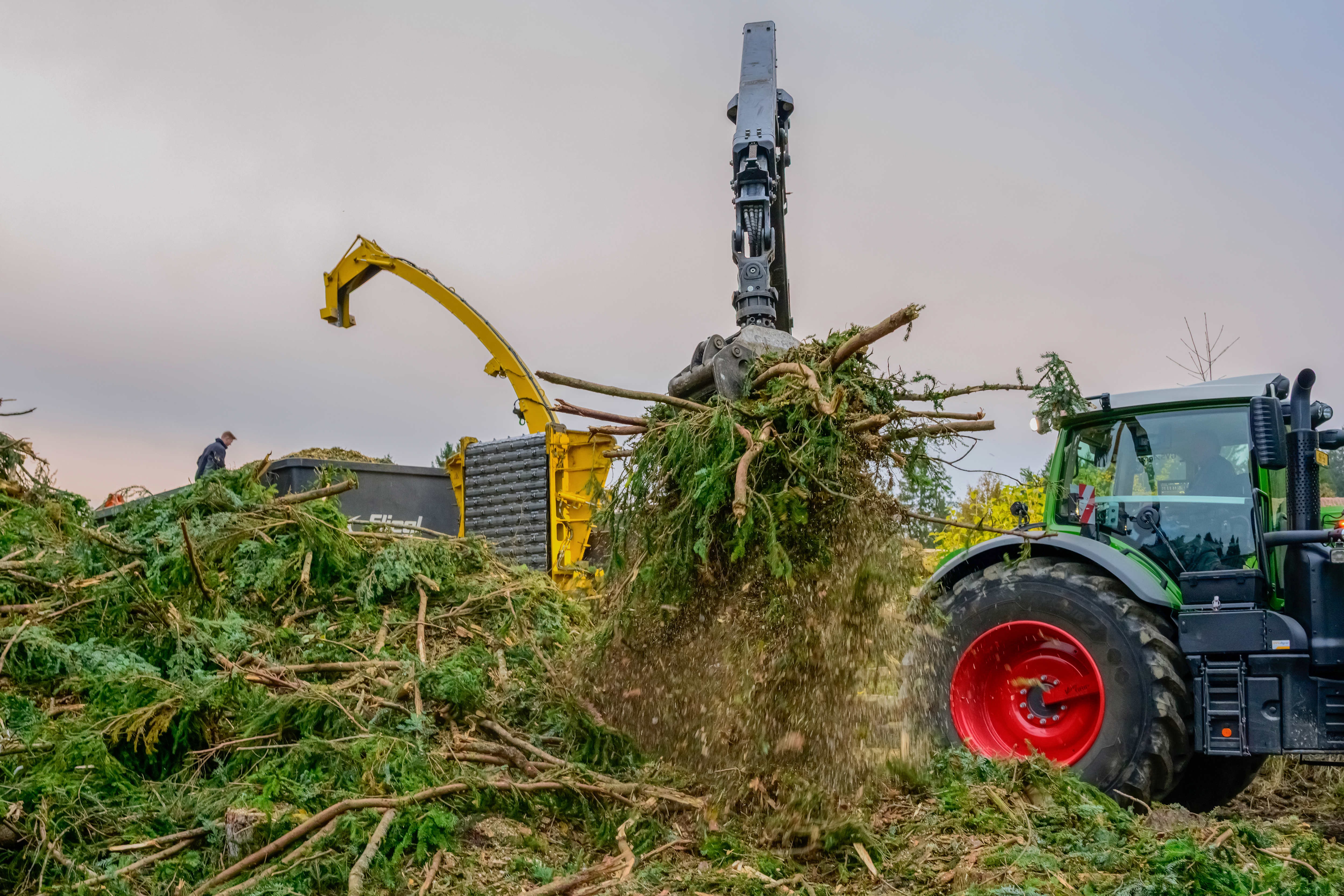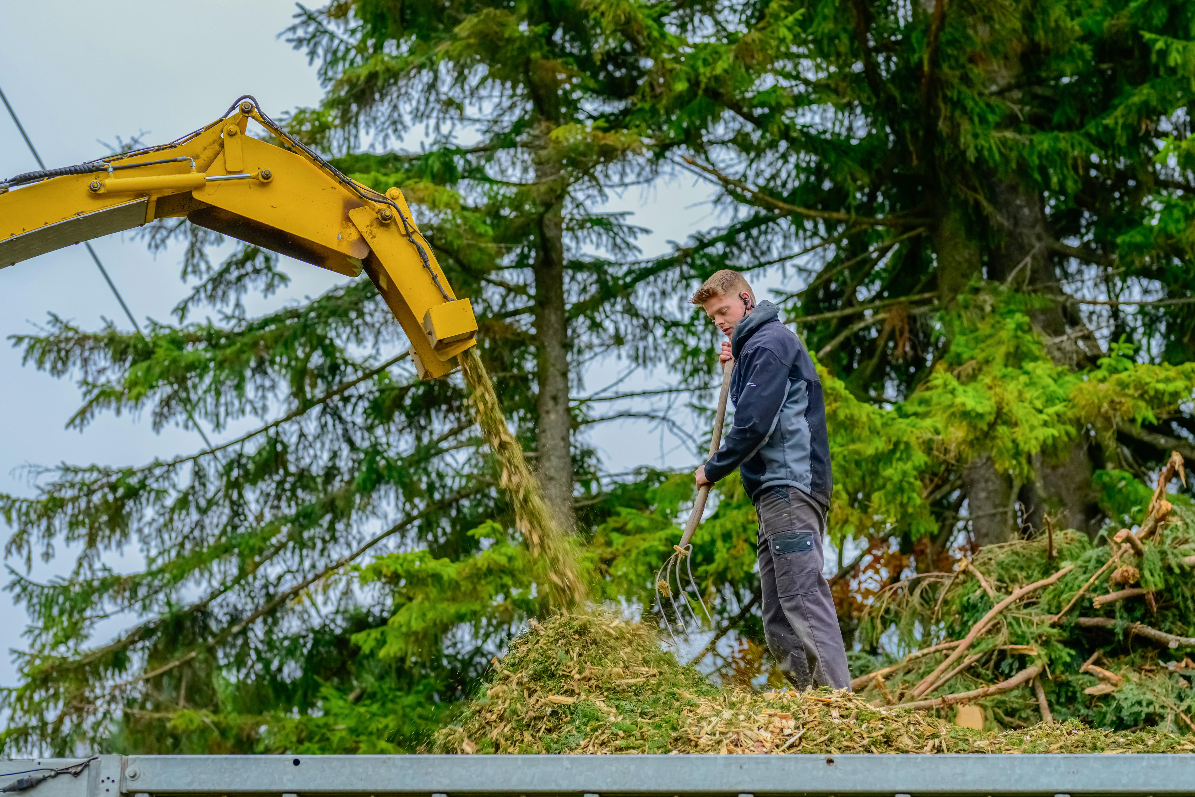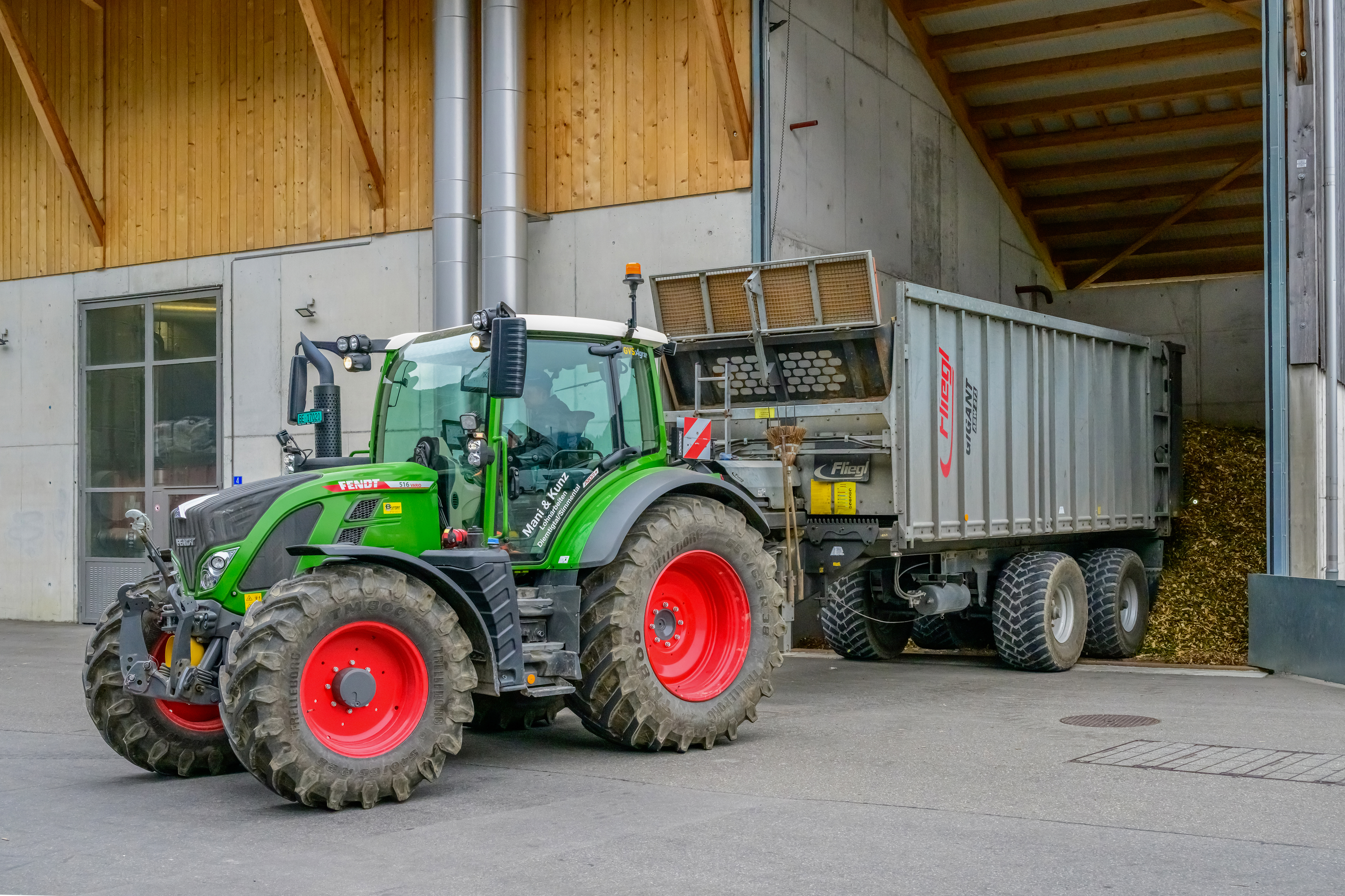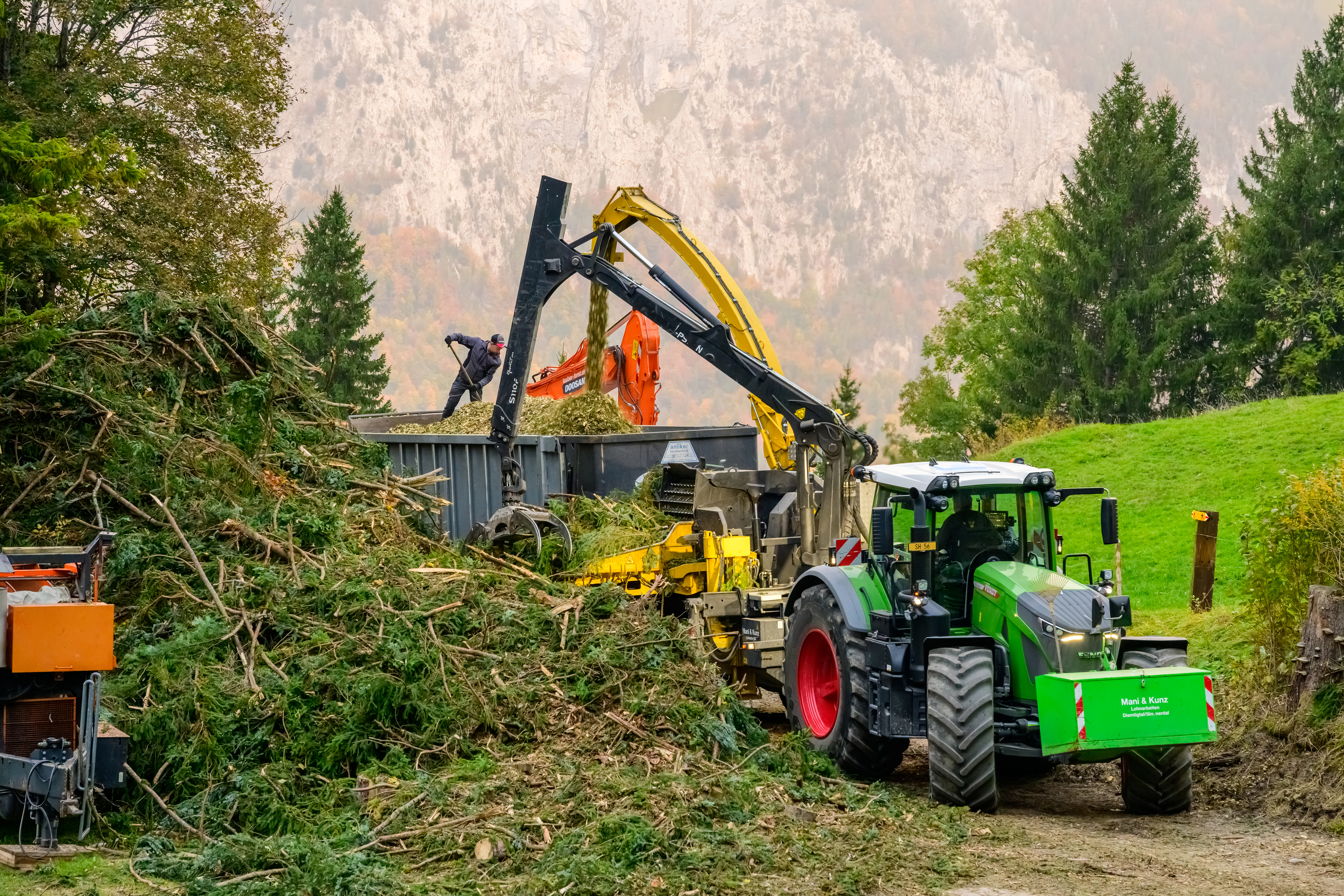 Durch die geschützte Lagerung in einer Halle bleiben die Holzschnitzel trocken und haben dadurch einen deutlich höheren Heizwert.