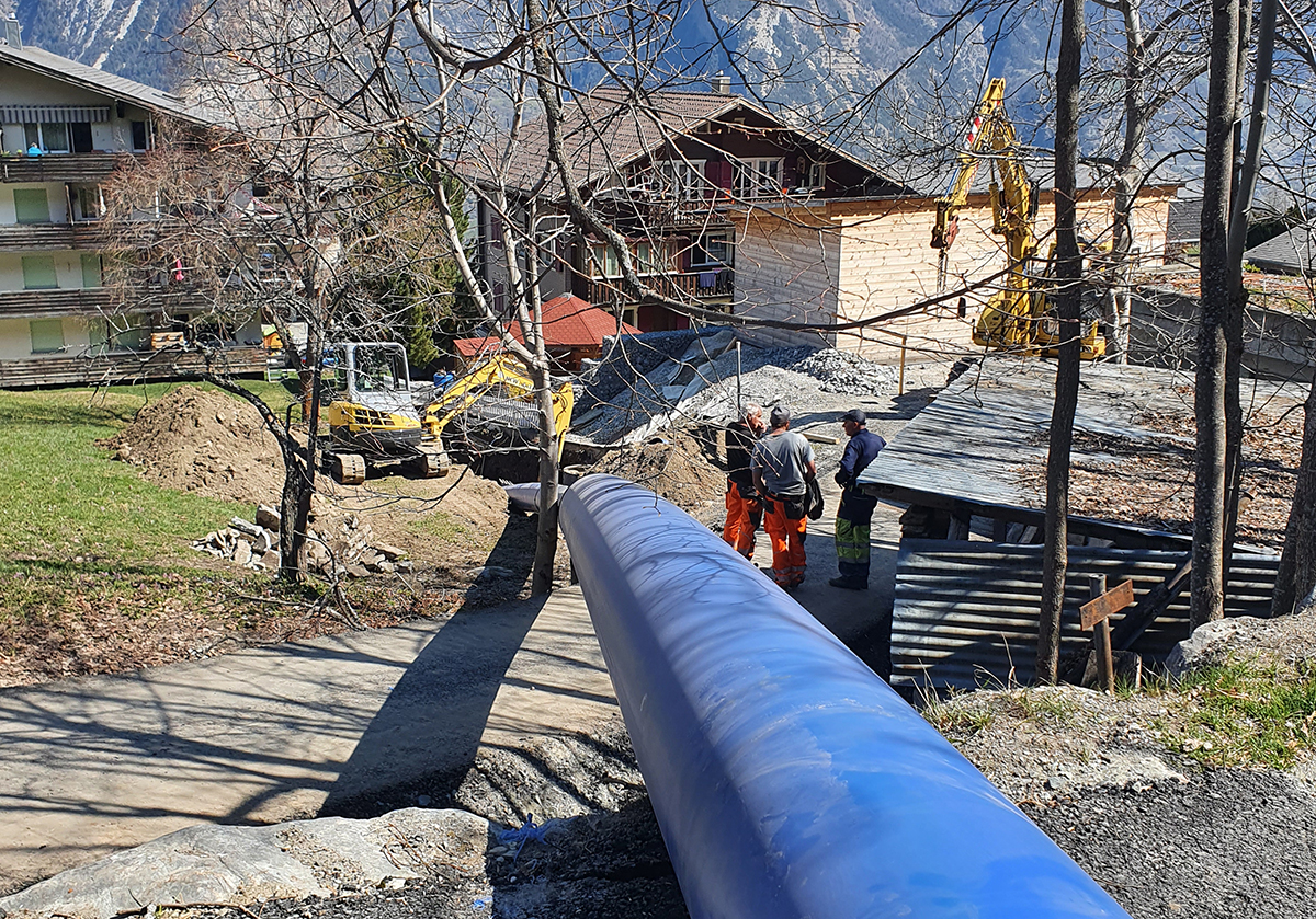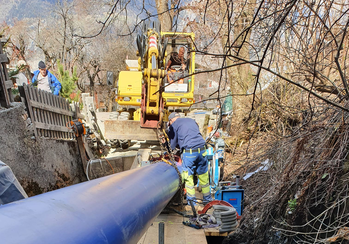 Bei einer Kontrolle wur­de im Bereich der ein­ge­dol­ten Betonrohrleitung Bachtoli-Sannustadil fest­ge­stellt, dass das Rohr leckt. Die Gemeinde muss­te nun das bestehen­de Betonrohr durch eine Kunststoffleitung ersetzen.