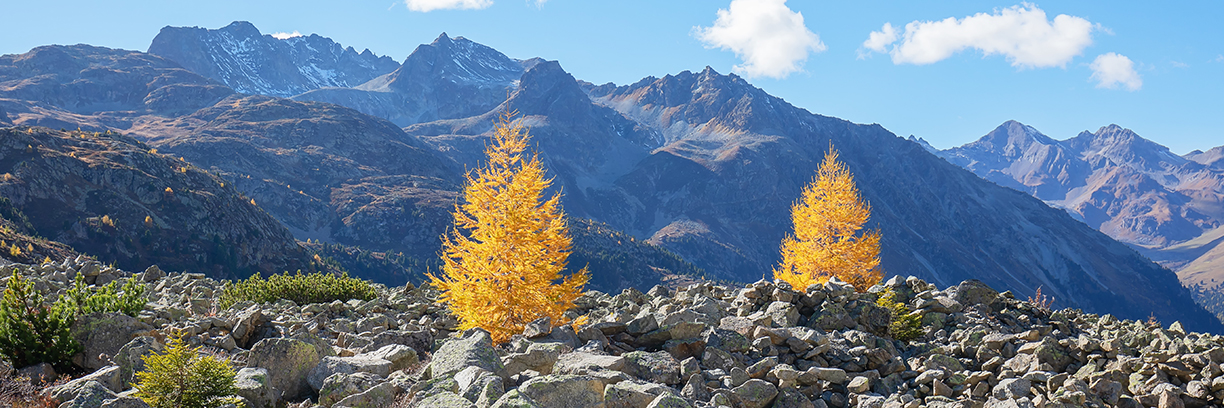 Am Albulapass stehen die zwei Lärchen für einen goldenen Herbst GR.
