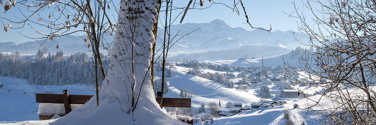 Rütiberg mit Blick auf Schwellbrunn AR und das Alpsteinmassiv.