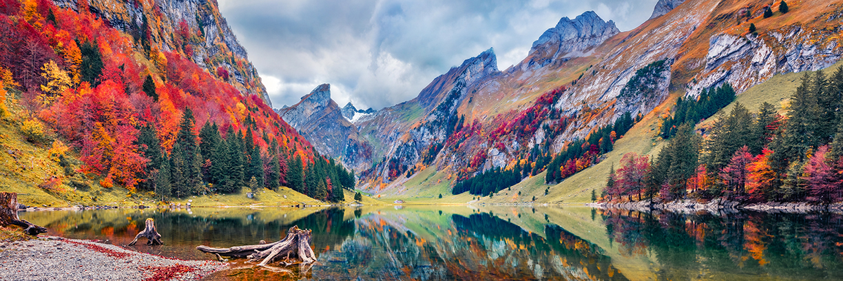 Beeindruckende Morgenstimmung am Seealpsee mit Blick zum Säntis AI/SG.