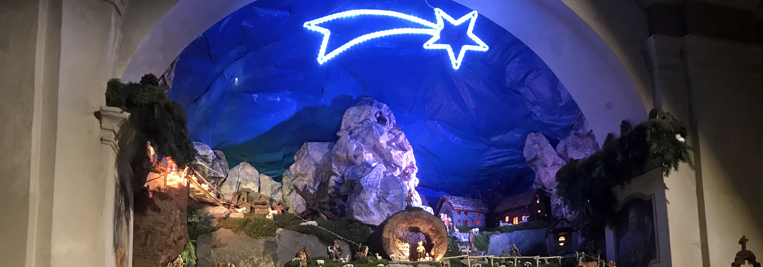 Teilansicht der prächtigen Krippe in der Kirche Beata Vergine del Carmelo in Corippo, Val Verzasca TI.